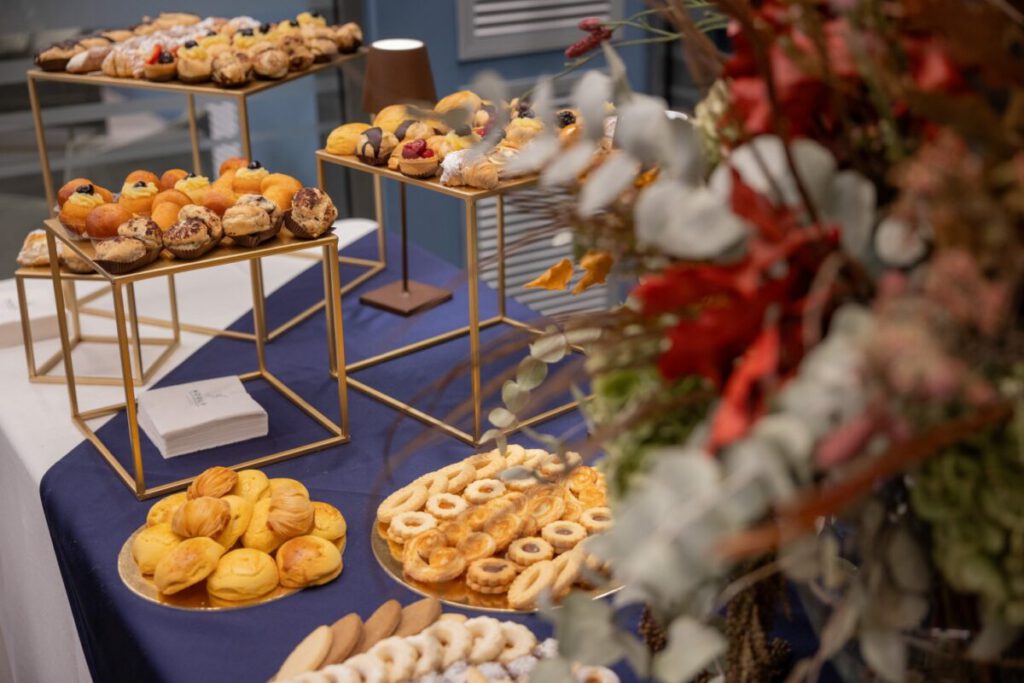 Dal coffee di benvenuto al lunch aperitivo finale, ogni momento conviviale è stato pensato per essere accogliente, elegante e funzionale, con materiali di pregio e personale qualificato.