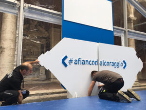 texi digital printing factory allestimento roche #afiancodelcoraggio ottobre 2019