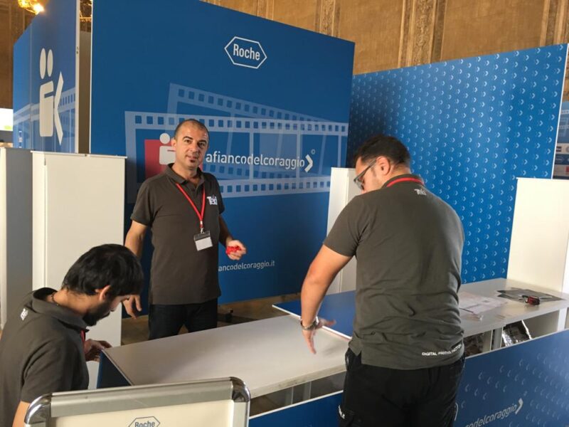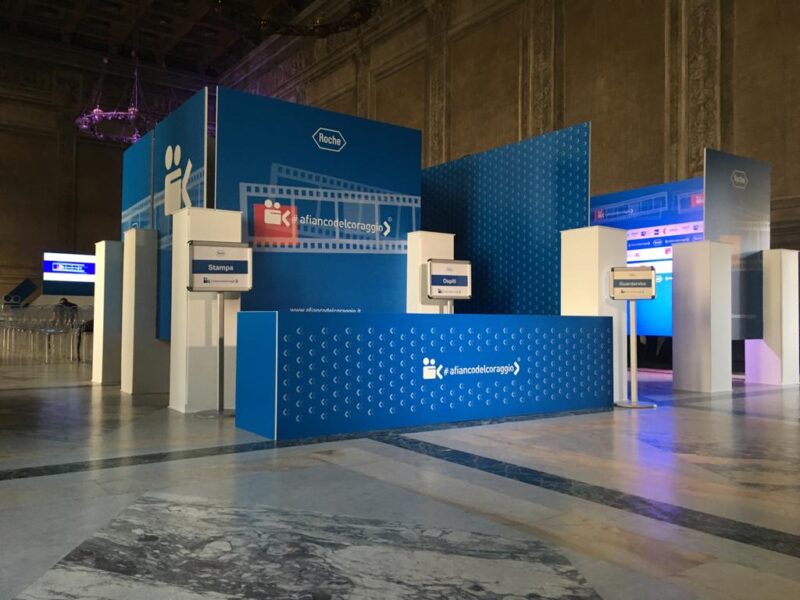 Lungo il percorso che conduce alla sala, è stata installata apposita segnaletica con Totem Tris e Roll Up.